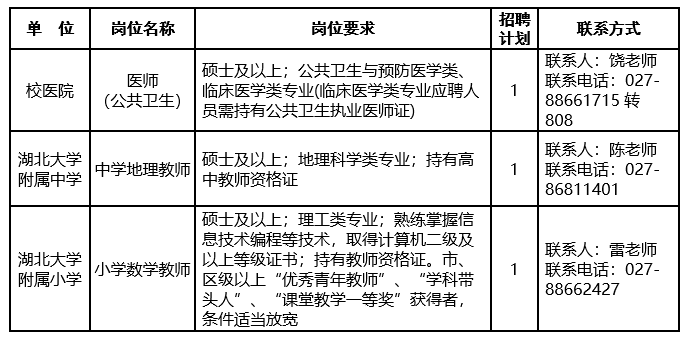 根据学校事业发展需要,现面向社会公开招聘校医院医师、附属中小学教师。