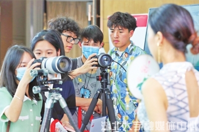 5月24日下午,武汉城市形象资源共享平台IPWuhan正式上线。图为大学生参与现场摄影体验活动。