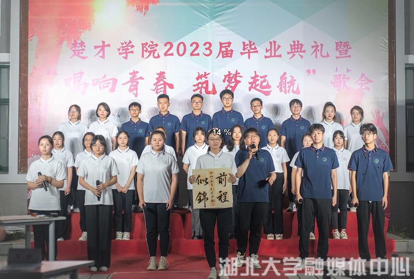在叶文斌歌唱时,2019级楚才计划文科班、新闻学专业学生毕若雪也在回望大学四年的点滴生活。为本场毕业歌会所感动,她很庆幸加入楚才,遇见一批和她志同道合的优秀的人。歌会最后,楚才学院院长朱小梅对本次活动赞不绝口,她祝愿学生们:“山高水长,前程似锦!”