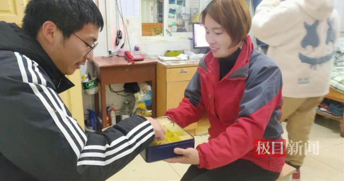 前不久,刘骐源打球时意外崴脚,造成骨折。“检查结果出来的一瞬间我就慌了,生活不能自理、没法到教室上课、没人照顾……”打完石膏的刘骐源拄着拐杖进入宿舍楼,正在打扫卫生的程咏华看到这一幕,马上带他到特护寝室住下。