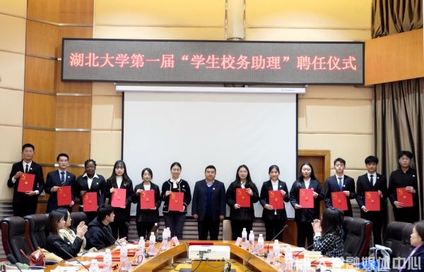 12名大学生从校长刘建平手中接过聘书,正式成为该校第一届“学生校务助理”。
