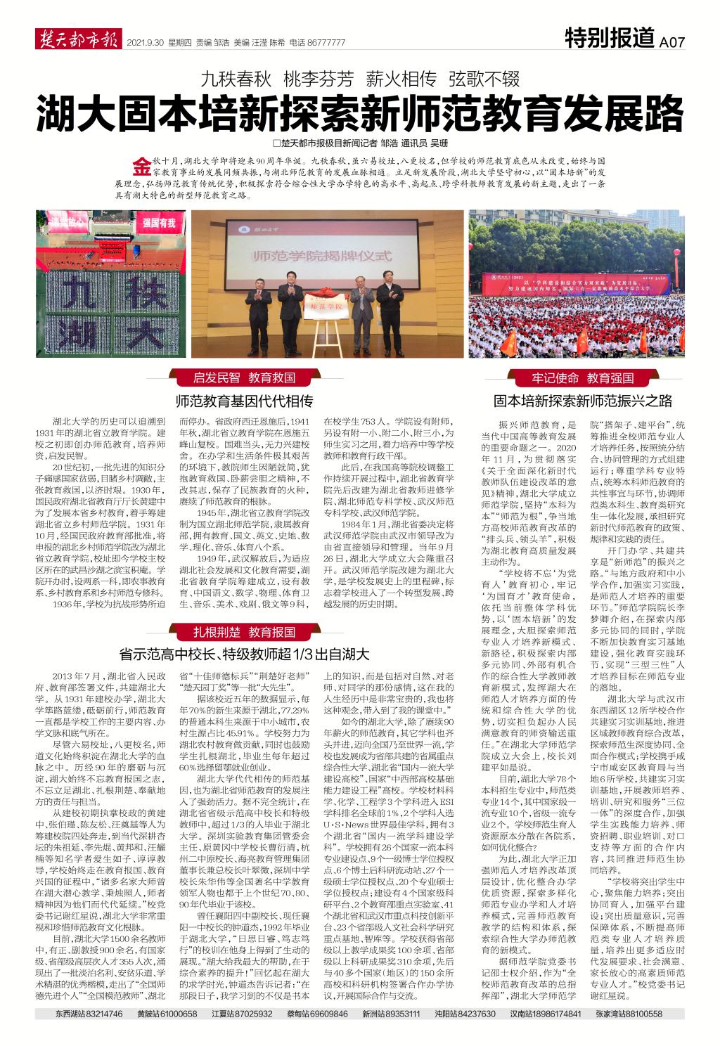 【楚天都市报】湖大固本培新探索新师范教育发展路