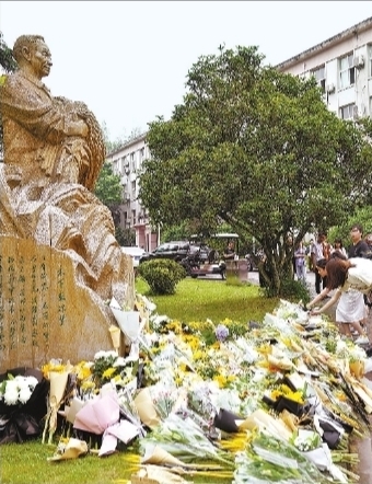 5月22日,西南大学学生来到袁隆平雕塑前敬献鲜花。新华社发
