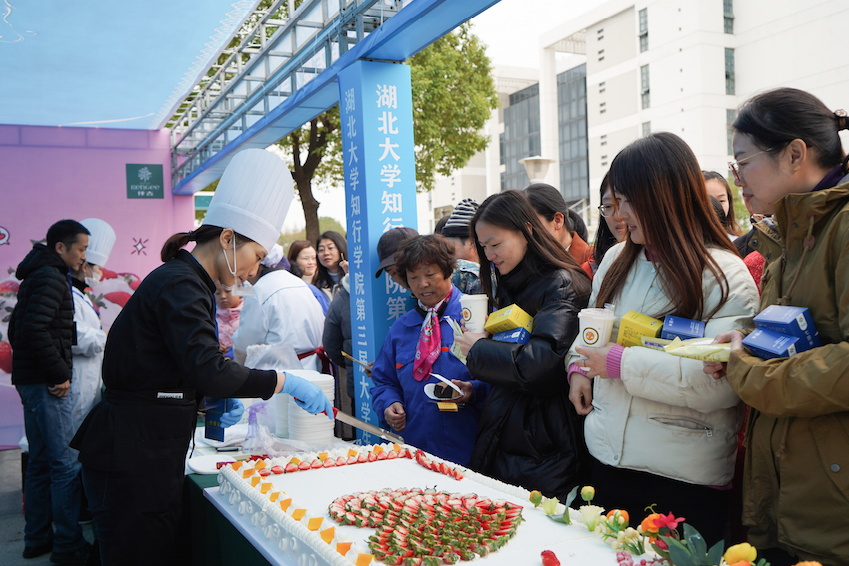 活动在该校艺术团的啦啦操和舞师表演中拉开帷幕。美食文化节展示的产品大部分都是师生日常教学科研成果,品种多达100多种。展品中,师生现场调制的鸡尾酒啤酒应有尽有,烘焙制作的面包蛋糕香喷可口,许多食品的口感和样式丝毫不亚于市场售卖。期间,师生们一边感受着丰富多彩的美食文化,一边品尝着现场调制烹饪的美酒美食,现场热闹非凡。在教学科研成果展示区,该校教师研发的可食性餐具、全谷物营养面条、嵌入式面条、全谷物营养米粉、芦荟酒等令人眼前一亮。“哇塞,这个餐具也太神奇了。用完了还能吃掉。”参加活动的学生陈丽咬了一口手上的“碗”后惊讶不已。粮食与食品工程学院专业老师刘齐博士介绍,这些餐具是大米加工过程中的副产品,制作过程中加入了一些耐高温和防水材料,能够使用半年之久,且成本远远低于市场上所使用的一次性餐具,既实惠又环保;在企业成果展示区,与学校进行合作的企业展示的3D打印技术、呼吸器佩戴VR课程、农药残留快速检测方法等令人格外好奇,学生们纷纷前往感受体验,“这是植物大战僵尸,不但像画一样立体,而且味道也不错。”合肥中农科泓智健康有限公司助理刁梅梅向围观的学生介绍,本次展出的四色3D食品打印机通过打印特制代餐粉,可以不间断打印出各式各样的平面食品,能满足不同人群需求,这些技术将逐步被引进到该校学生的教学课堂,更好提升学生的实践运用能力。此外,美食文化节过程中还举行了啤酒大赛、茶文化展示等活动,师生积极参与其中,其乐融融。许多网友观看网络直播后纷纷表示“又是别人家的学校”。