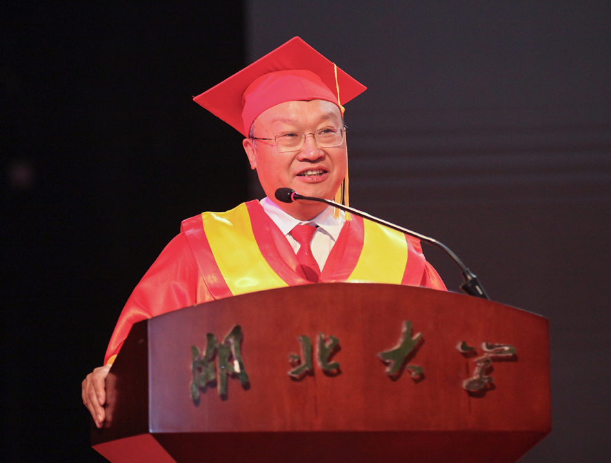 “面向新时代,面向未来的人生,我有几句话,送给即将远航的你们。”谢红星寄语毕业生们,行稳致远,就是要不忘初心,勇立潮头。不忘初心就是要坚守以家国情怀为内涵的崇高理想,坚持激励自己和他人不断前行、开创未来的远大目标,不忘初心,需要坚守,需要奉献和付出。行稳致远,就是要不断学习,完善自我。学习体现了工具性和终极性的统一,学习动力的本源来自于好奇心,学习贵在开放包容、交流互鉴。行稳致远,就是要抵御诱惑,追求高尚。抵御诱惑就要加强约束,追求高尚,坚守底线。 “在湖大的学习让我对教育、教师有了更深刻的理解和热爱.请校长和老师们放心,未来已至,我们一定会努力做有有理想、有情怀的追梦人。”湖大艺术学院2016级硕士毕业生张念伟说。(中国教育在线 文/吴珊图/向正鹏)