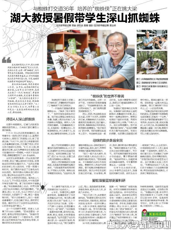【楚天都市报】湖大教授暑假带学生深山抓蜘蛛