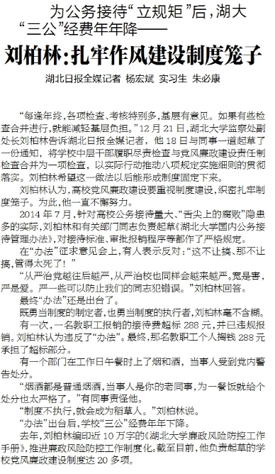 刘柏林认为,高校党风廉政建设要重视制度建设,织密扎牢制度笼子。为此,他一直不懈努力。