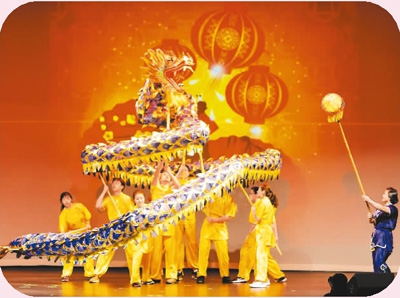图为孟菲斯大学孔子学院舞龙队演出《中国龙》。