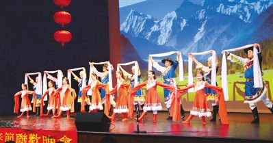 图为孟菲斯华人春节联欢晚会上演藏族舞