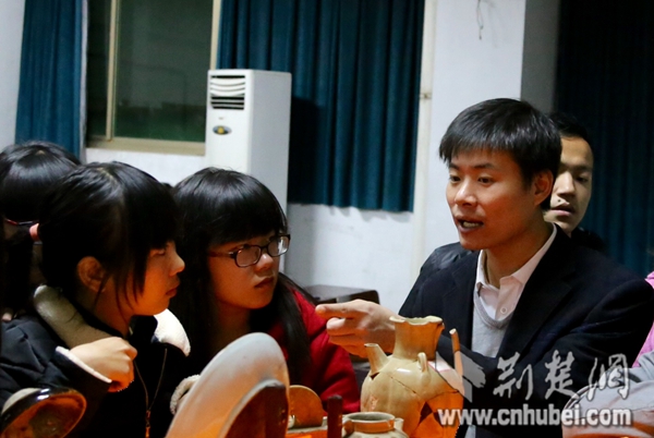 许老师不仅讲解自己的集邮知识,还介绍相关的中国收藏文化,在今年的11月下旬,他把知名收藏家——武汉长庭陶瓷博物馆馆长余长庭请进了课堂,给大学生们普及民间收藏的专业知识。