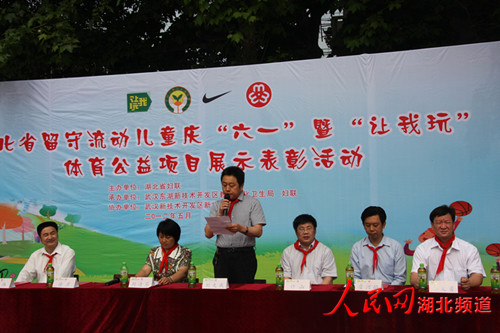 人民网武汉5月31日电 5月30日上午由湖北省妇联主办、武汉东湖新技术开发区教育文化卫生局承办、武汉新技术开发区新桥学校协办的湖北省留守流动儿童庆六一暨 让我玩体育公益项目展示表彰活动,在湖北省让我玩基地学校东湖新技术开发区新桥学校顺利举行。